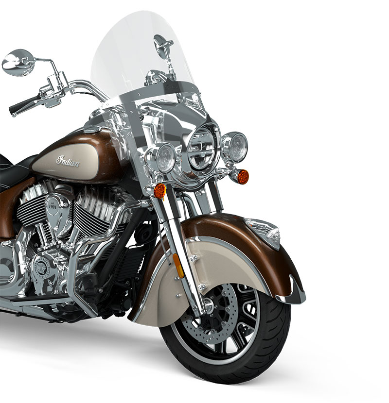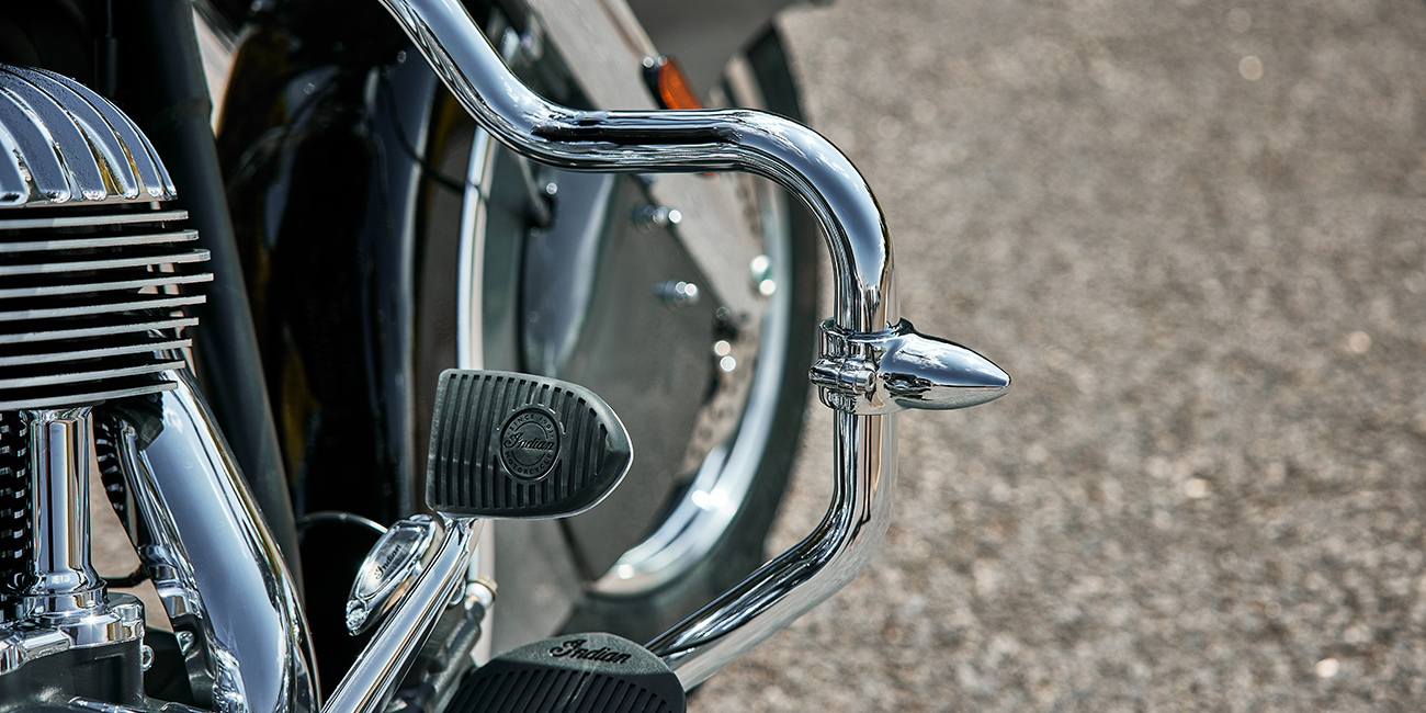| Standardutrustning | Lexanruta med snabbfästen; Vinylsadel; Hårda packväskor med fjärrlåsning; Störtbågar; Däcktrycksmätare; Extralysen; ABS; Farthållare; Nyckellös tändning; Indian® tankdekal; |