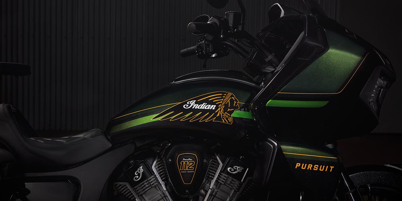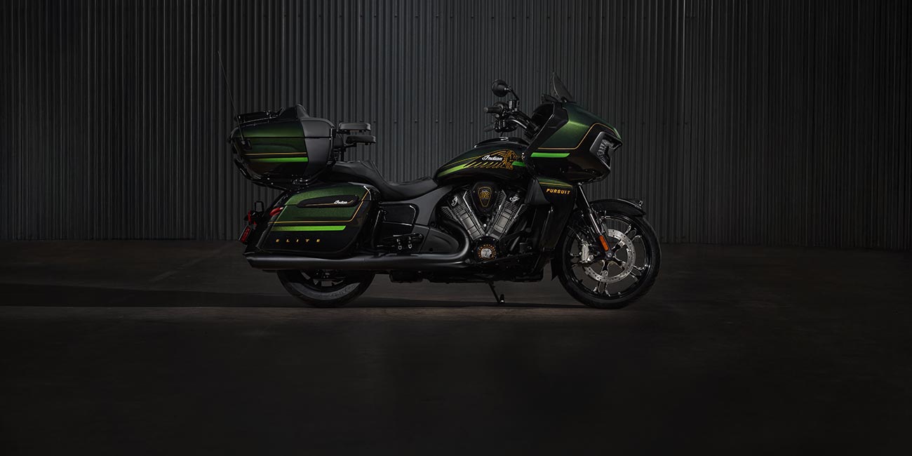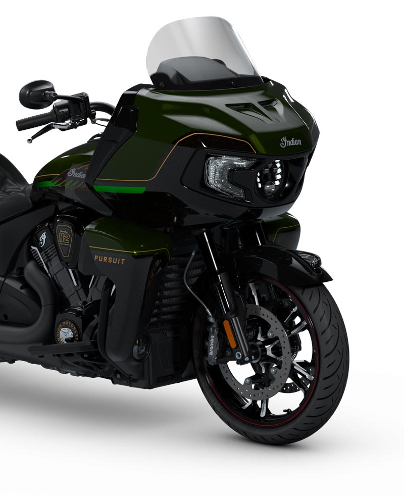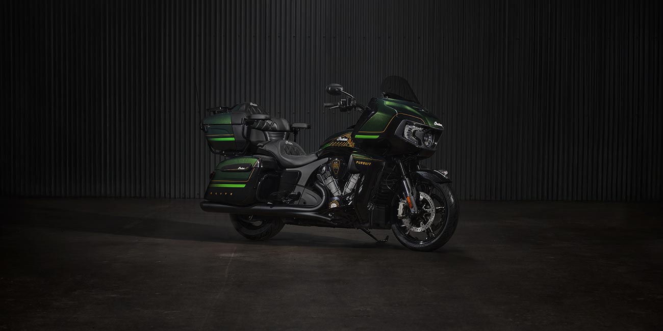 | Standardutrustning | Hårda packväskor med fjärrlåsning, elektriskt justerbart kåpglas, 140+ liters förvaring, nyckelfri tändning, justerbara ventiler i kåpa, USB-laddare, däcktrycksövervakningssystem (TPMS), fotplattor med headdress-logo för både förare och passagerare, grönt-färgmatchad, handsydd värmesadel, bakgrundsbelysta knappar i handkontroller och värmehandtag. armstöd för passagerare samt belysning. |